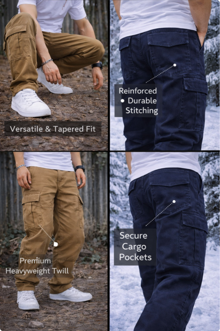 BREXX Urban Indigo Denim Utility Cargo Pants – Rugged 6-Pocket Tapered Fit