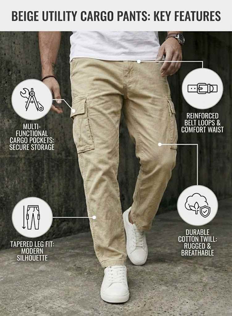 BREXX Urban Utility Beige Cargo Pants – Premium Cotton Twill & Multi-Pocket Tapered Fit