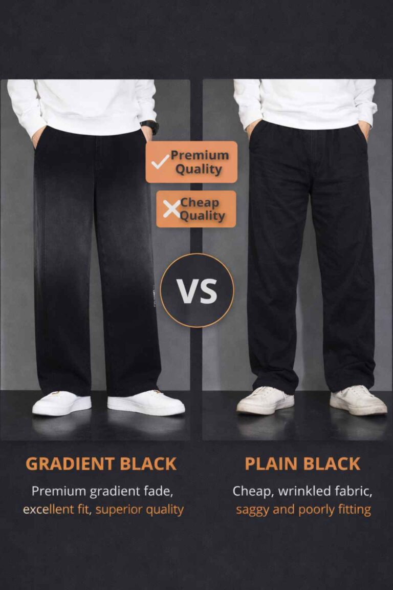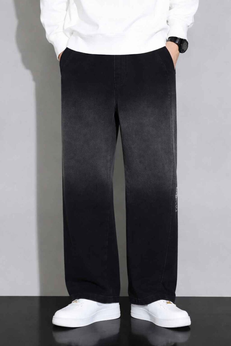 BRAXX Men’s Premium Gradient Black Wide-Leg Pants | Urban Streetwear Relaxed Fit Trousers